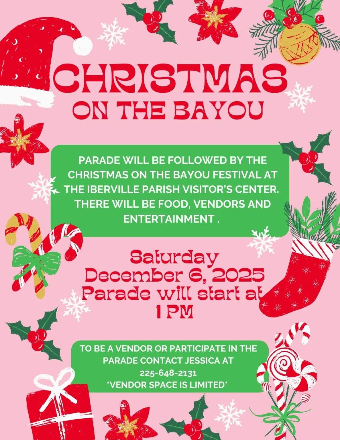 The Village of Grosse Tete’s annual Christmas Parade will roll at 1:00 PM on Saturday, December 6th, followed by its Christmas on the Bayou Festival at the North Iberville Visitors Center. Food, vendors, entertainment, and Christmas cheer are sure to make it a fun-filled event! This event is free to attend and open to all ages.